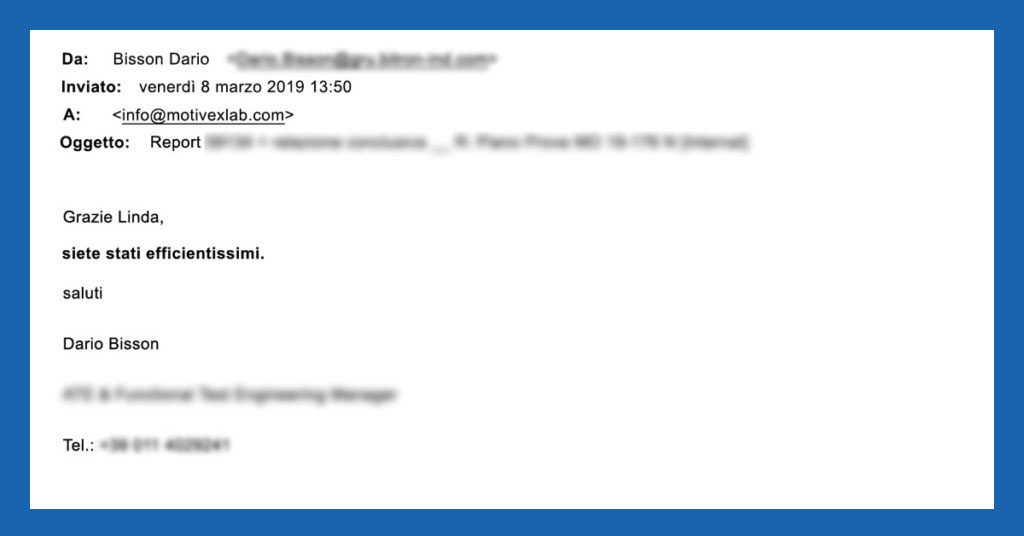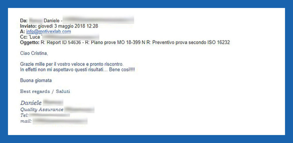 Prima di conoscere MTC srl facevo fare le prove a clienti e fornitori. Inizialmente ero un po’ scettico, poi ho avuto un’esperienza assolutamente positiva.